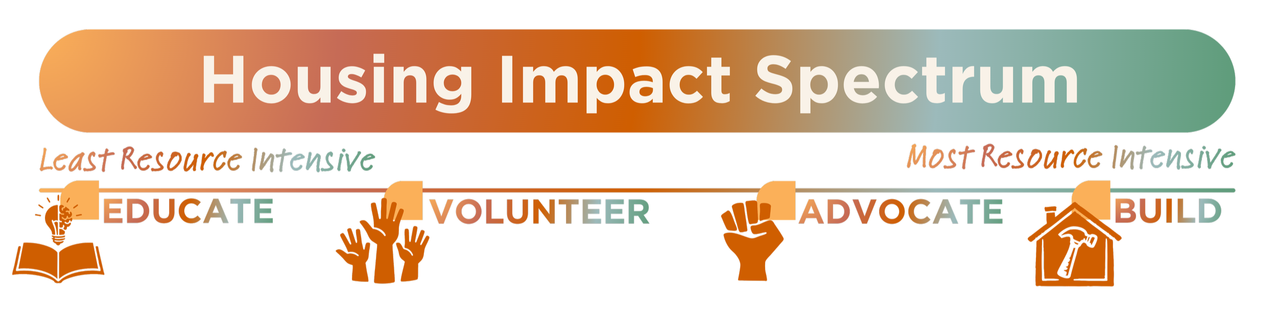 Through the Housing Impact Spectrum framework and interactive Discovery Workshops, your congregation will identify the track(s) and create implementation plans that best align with your resources, mission, and neighborhood needs.